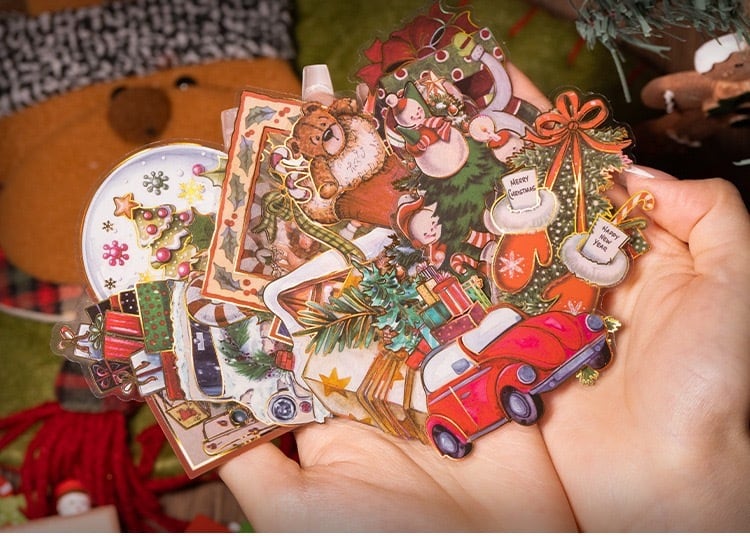 【②】5種 コラージュ 海外 素材紙 ステッカー シール まとめ売り クリスマス ホリデー